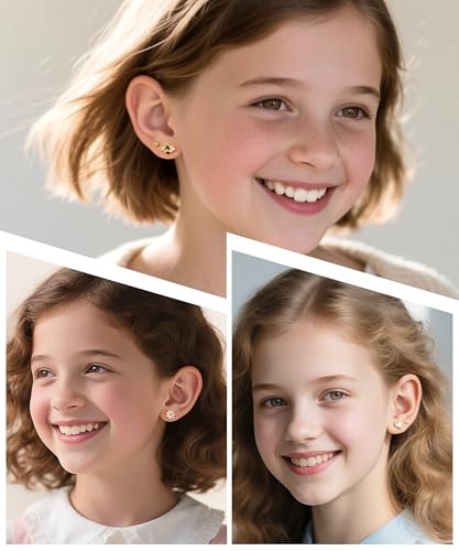 Flat Screw Back Hypoallergenic Earrings for Girls Toddler Kids Baby Women Cute Surgical Stainless Steel Jewelry 3