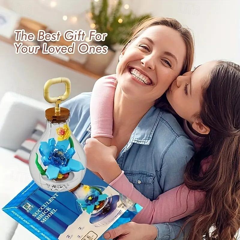 Women's Day Gifts Light Bulb Succulent Flower Plant Building Blocks Succulent Potted Plant Building Blocks Desktop Decoration Gift Women's Day Mother's Day Gifts for Girls Mother's Day Gifts for MoM 8