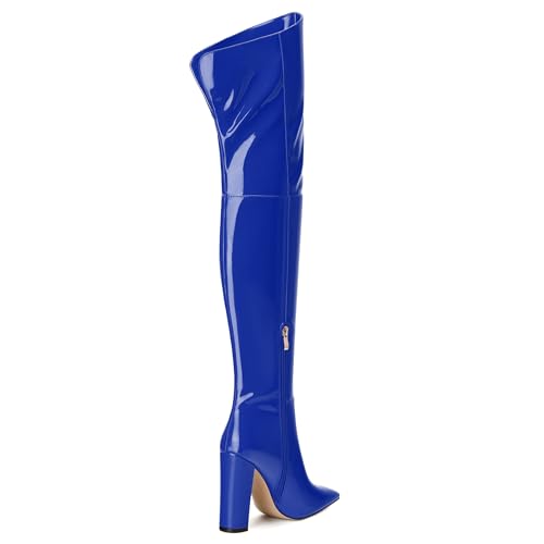 MERRORI Women's Thigh High Boots Pointed Toe 4.3-Inch Chunky Heel Over The Knee Boots Patent Sexy Fashion Side Zipper High Heel Boots 5