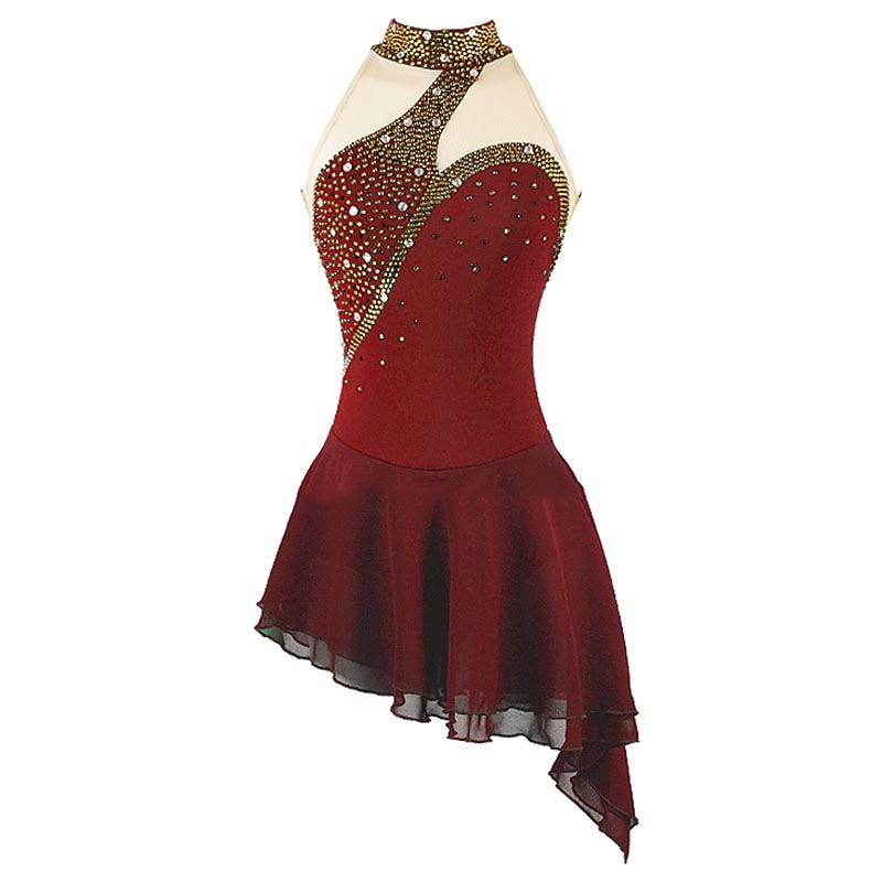 More information about Figure Skating Dress Women's Girls' Ice Skating Dress Black White Pink Open Back Spandex High Elasticity Training Competition Skating Wear Crystal / Rhinestone Sleeveless Ice Skating Figure Skating