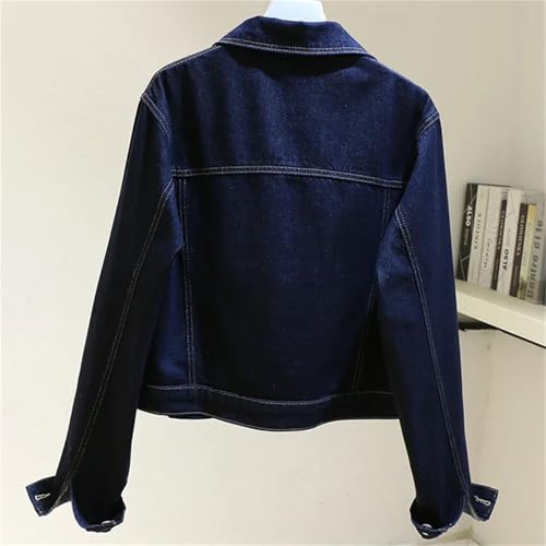 Young Girl Retro Dark Blue Short Denim Jacket, Loose Casual Student Denim Jacket 7