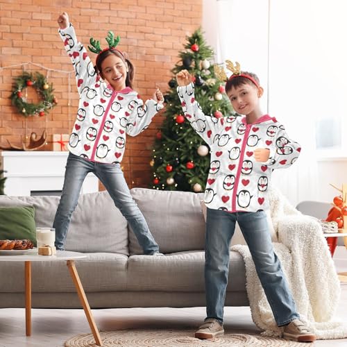 OTVEE Doodle Penguin Valentine Heart Kids Hoodie Jacket Fall Spring Full Zip Warm Outwear Coat 6