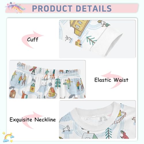 Girls Boys two-piece Set Winter House Snow Outfit for Kids Long Sleeve Top and Long Pants 18M-8Y 6