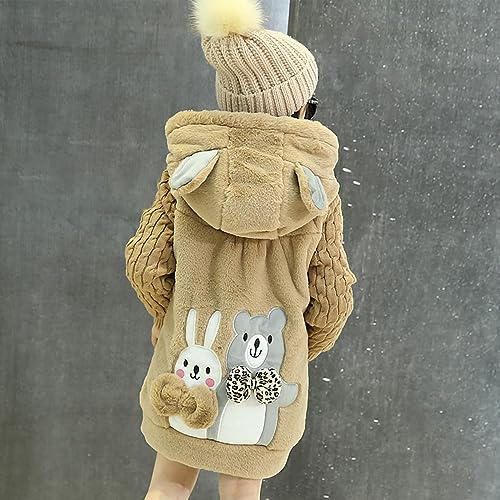 Winter Warm Fleece Coat Kids Little/big Baby Girls Winter Hooded Long Sleeve Zipper Jacket Pattern Flannel Warm Coat 6
