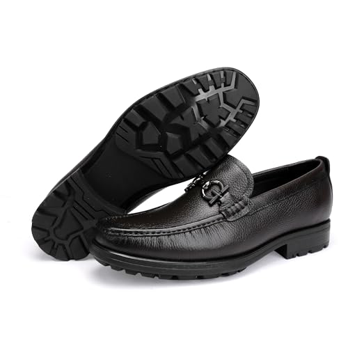 Men's Premium Leather Dress Shoes, Luxury Buckle Handmade Dress Loafer Party Shoes Wedding Casual Slip on Loafer for Mens 7