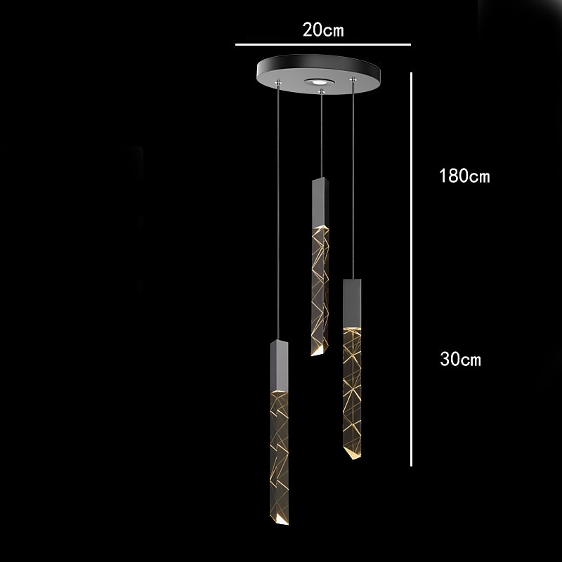 LED Pendant Light Dimmable 1/2/3/6 Head Crystal Modern Kitchen Island Light Fixture,Adjustable Pendant Lighting for Kitchen Island,Black Gold Led Chandelier for Dining Room,Bedroom 110-240V 3