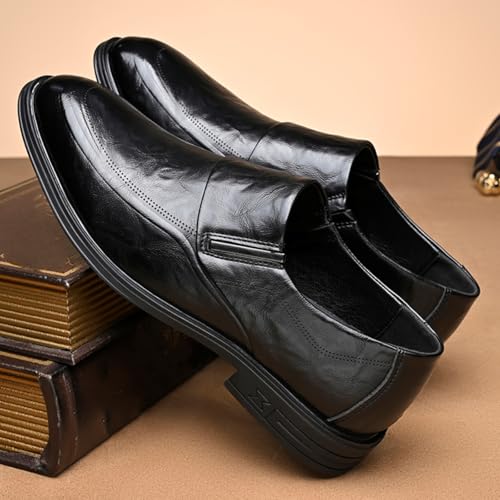 Mens Retro Leather Slip On Dress Loafers Classic Low Heels Pointed Toe Penny Shoes for Formal Business Wedding Office 6