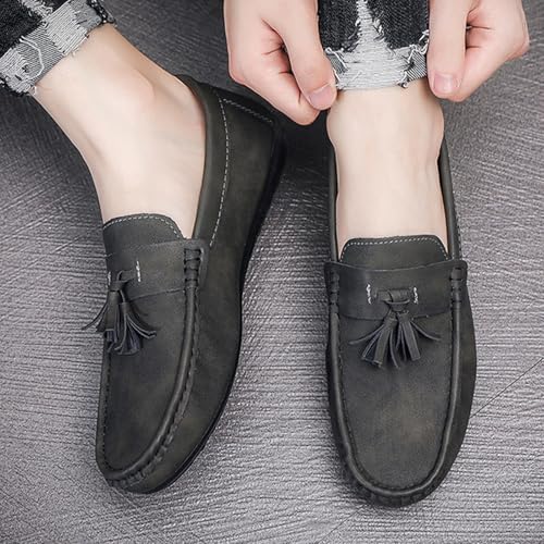 Men's Soft Leather Moccasin Boat Shoes Classic Tassel Low-Top Penny Shoes Comfortable Slip-On Non-Slip Walking Loafers 5