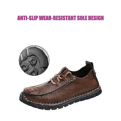 Men's Stylish Hand Stitched Leather Loafers Slip On Comfortable Soft Sole Moccasin Boat Shoes Stylish Casual Driving Dress Flats for Business 6