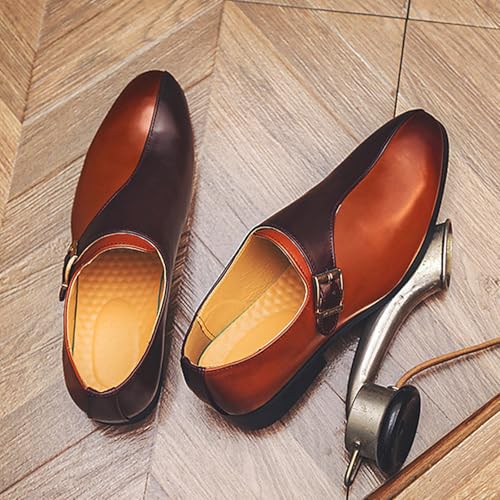 Men's Leather Buckle Monk Strap Low Heel Dress Loafers Fashion Comfortable Pointed Toe Slip On Business Casual Formal Leather Shoes for Tuxedo Prom Wedding Driving 7