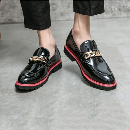 Santimon Men's Patent Leather Chain Penny Loafers Slip-On Moc Toe Chunky Dress Shoes for Weddings, Parties & Formal Events 7