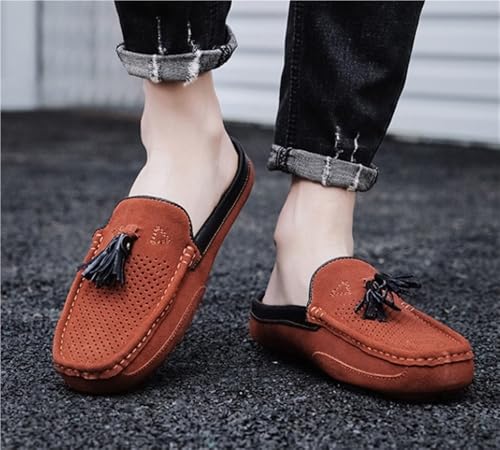HOT ! Mens Loafers Shoes Genuine Leather Tassel Stitching Details Perforated Breathable Flexible Comfortable Lightweight Flat Heel Slip Resistant