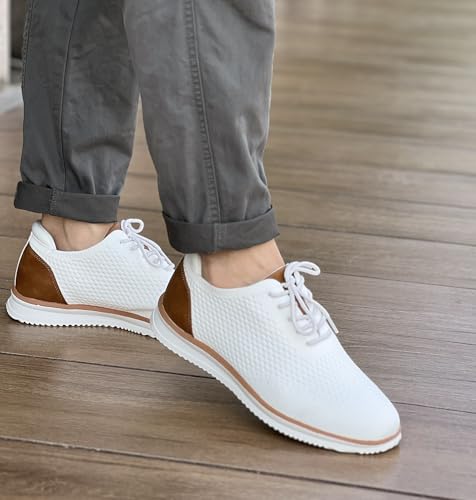 Men's Fashion Dress Sneakers Casual Walking Shoes Business Oxfords Comfortable Lightweight Breathable Tennis Lace-Up Mesh/Leather 6
