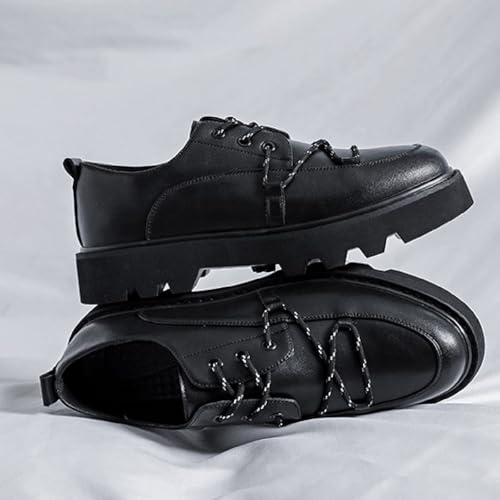 Men's Leather Lace Up Chunky Heel Platform Oxfords Classic Round Toe Block Heel Lug Sole Formal Derby Non-Slip Heightening Work Office Dress Shoes 6