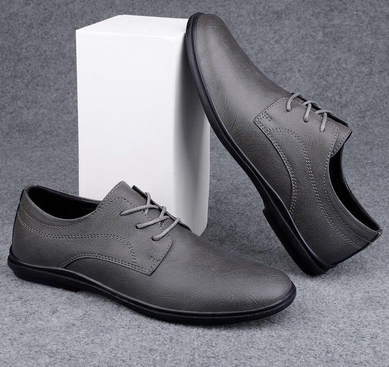 HOT ! Men's Genuine Leather Oxford Shoes - Classic & Modern Wedding Formal Dress Shoes, Lightweight & Comfortable Derby Shoes for Men(Gray,8)