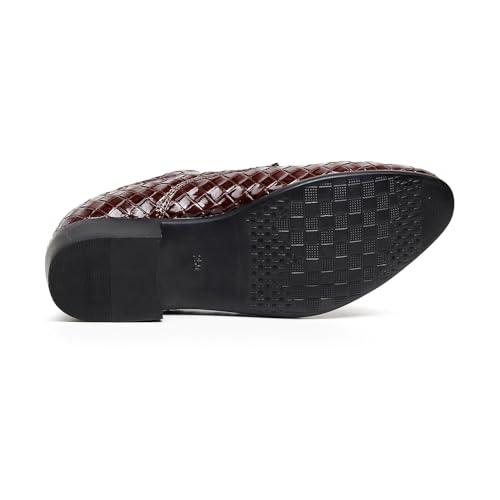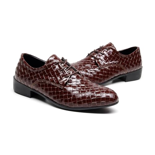 • Luxurious Style: These Oxford dress shoes boast a sleek woven leather upper in a vibrant red hue, adding a touch of sophistication to any formal attire.