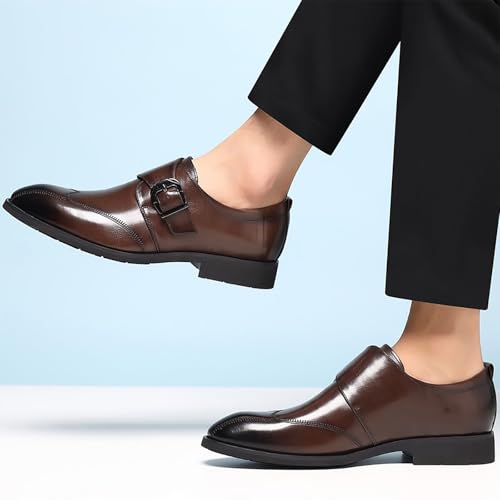 Men's Classic Strap Slip On Comfortable Leather Pointed Toe with Buckle, Non-Slip Oxford Shoes Business Work Dress Shoes 6