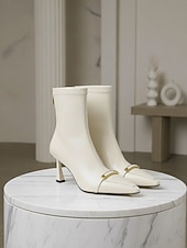 More information about Women's Patent Leather Ankle Boots with Pointed Toe, Gold Buckle Detail and Stiletto Heels, Chic Urban Party Fashion Footwear