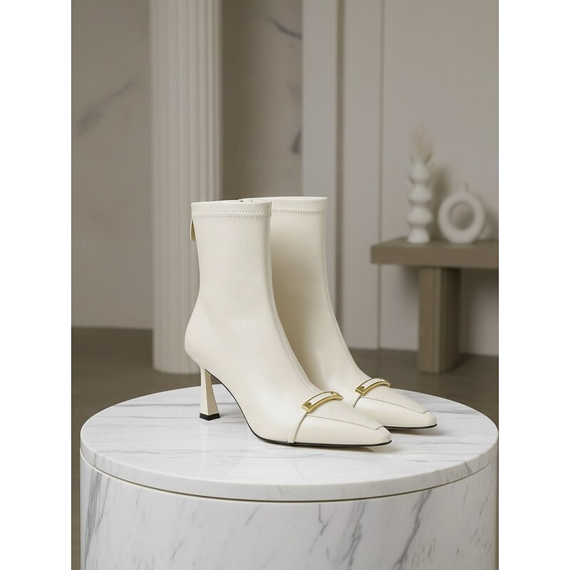 HOT ! Women's Patent Leather Ankle Boots with Pointed Toe, Gold Buckle Detail and Stiletto Heels, Chic Urban Party Fashion Footwear