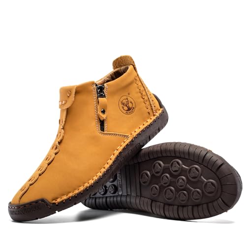 FLYLAND Men's Casual Leather Handmade Fashion Sneakers Ankle Chukka Boots Lightweight Mid-top Dress Shoes Walking Driving Shoe