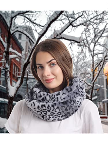 LA CARRIE Womens Leopard Print Infinity Scarf Loop Circle Neck Warmer (Grey Leopard) 4