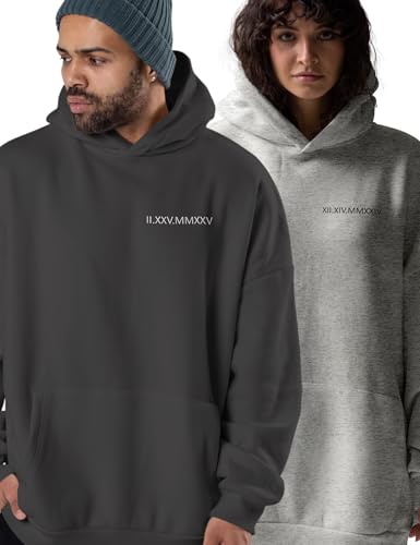 • HIGH-QUALITY MATERIAL - Life Plus custom embroidered Roman numeral date couple's sweatshirts and hoodies are made of high-quality materials, %50 cotton and %50 polyester. Our products are manufactured using a pre-shrunk fleece knit and using air-jet yarn to give a softer feel and reduce piling.