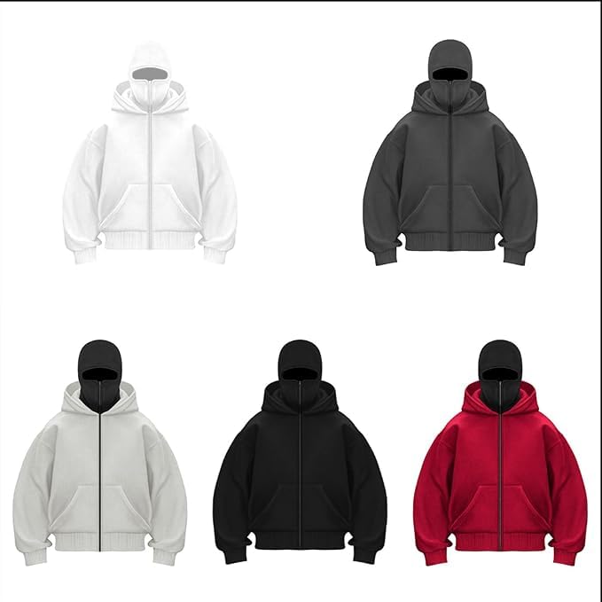 More information about Balaclava Hoodie Jacket Zip Up Fashion Double Layer Hooded Sweatshirt Outerwear Jacket Y2K Sweatshirt for Men 2025