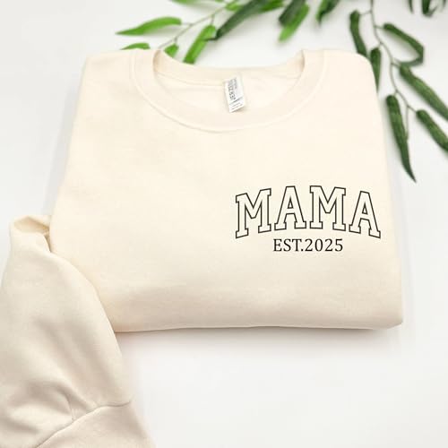 • Classic Mama Varsity Style – Features a bold embroidered “MAMA EST.2025” design on the chest, blending timeless varsity style with a modern personalized touch.