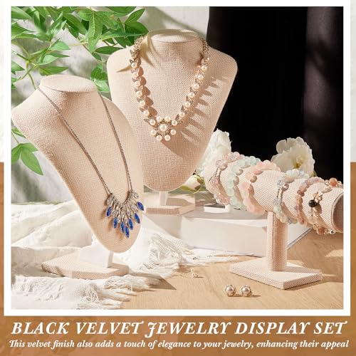 6 Pcs Jewelry Display Set Necklace Display Stand T Bar Bracelet Holder Jewelry Bust for Home Store Trade Show(Linen) 6