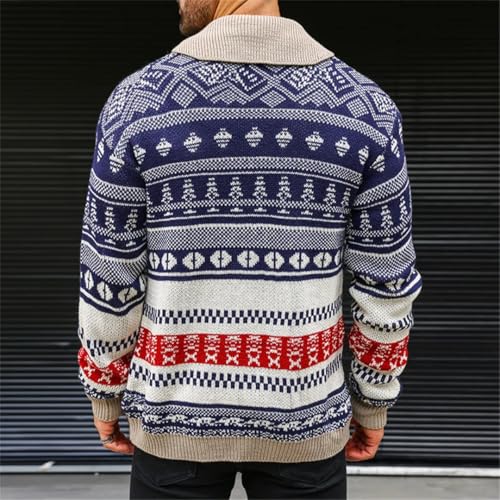 More information about Men Tops Casual Long Sleeve Turn-Down Collar Buttoned Knit Cardigans Vintage Geometric Sweater
