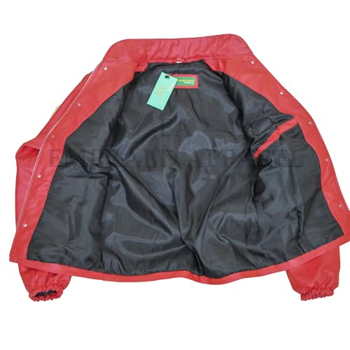 • High-Quality Faux Leather Jacket: Made from premium synthetic materials, this red faux leather jacket offers a stylish and durable outerwear option that is both affordable and animal-friendly.