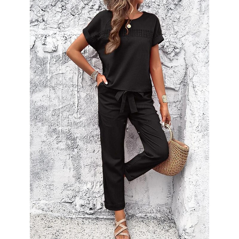 This Women's Fashion Shirt Linen-Inspired Sets Two Piece Sets Pants Trousers Short Sleeve Round Neck Solid Color Drawstring Casual Daily Black Orange Green Spring & Summer Regular Fit combines elegant design with practical functionality. Every detail has been carefully considered to ensure you get the finest possible experience. The first-class construction means this product will serve you well for years to come.