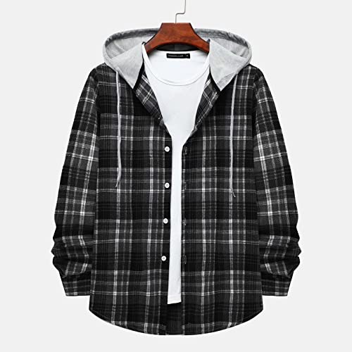 HOT ! NATHGAM Men's Jacket Shirts Plaid hooded Fashion oversized Coat Lightweight Long Sleeve Fall Warm Casual Button Down Shirts