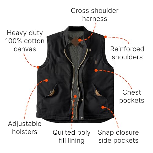 Legendary Whitetails Men's Concealed Carry CCW Vest with Two Holsters Water-Repellent Canvas Insulated 5