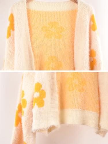 Daisy Cardigan for Women Trendy Flower Long Sleeve Knit Outfits Fuzzy Cropped Aesthetic Sweater 6