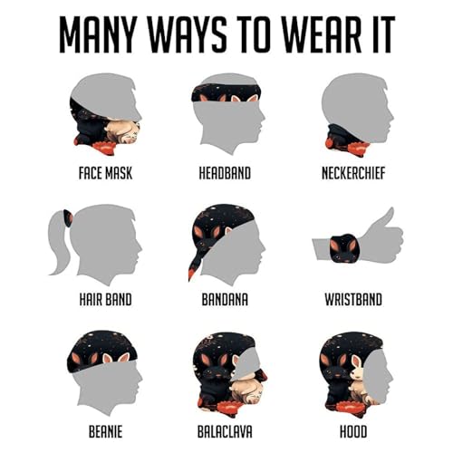 • 【Comfortable Material】This Cartoon Rabbit Couple versatile bandana gaiter headwear can be worn up to 13 different ways to ensure you will be ready for all occasions. Face mask stretchy design to be universal fit and can be used for different purpose.
