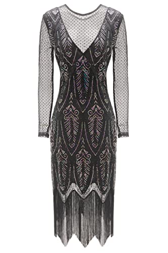 HOT ! BABEYOND Women's Gatsby Flapper Dress - 1920s Long Sleeves Sequin Beaded Dress for Party Black