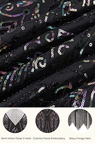 BABEYOND Women's Gatsby Flapper Dress - 1920s Long Sleeves Sequin Beaded Dress for Party Black 6