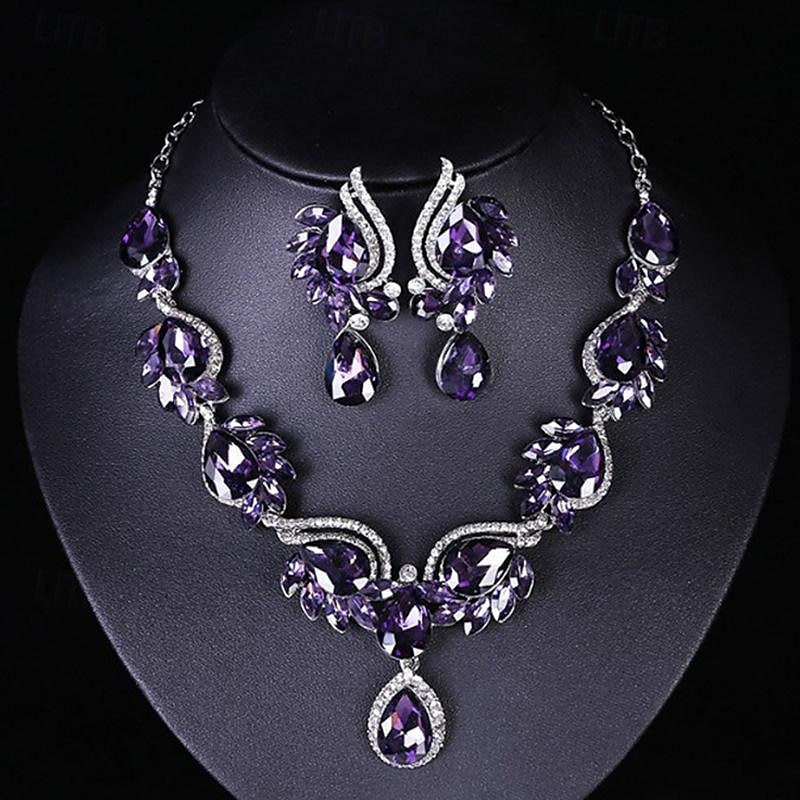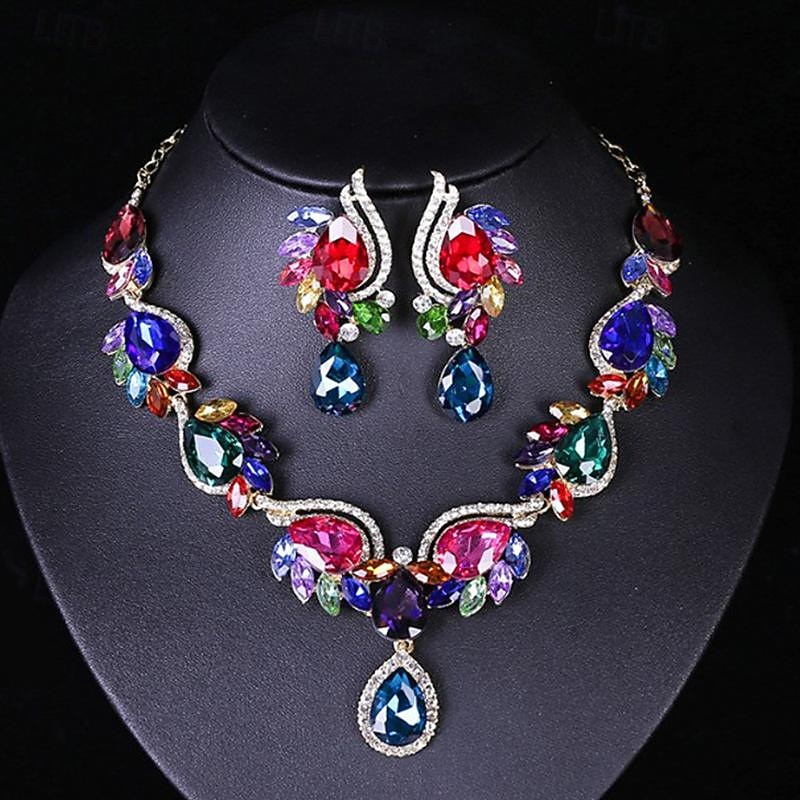 More information about Jewelry Set 3pcs Glass Alloy 1 Necklace Earrings Women's Elegant Fashion Luxury Geometrical Geometric Jewelry Set For Wedding Party Wedding Guest