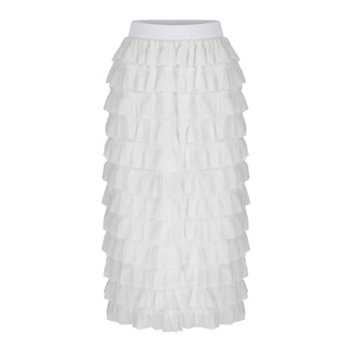 HGps8w Long Maxi Tulle Skirts for Women Elegant A Line Ruffle High Waisted Tiered Layered Mesh Tutu Skirt Petticoat 7