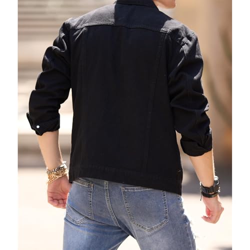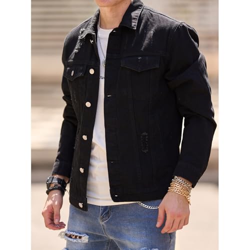 Denim Jacket for Men Ripped Holes Button down Denim Jacket retro Casual Slim Fit Long Sleeve Fashion Solid Jackets
