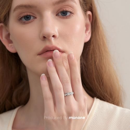 munone18k Gold Plated Minimalist Princess Cut Cubic Zirconia,Channel Set Eternity Rings for Women Men,Non Tarnish Hypoallergenic Titanium Band Stackable Ring 2