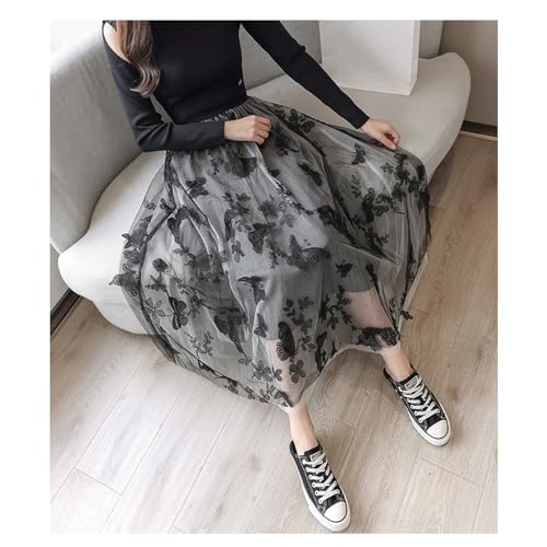 HOT ! Women's Butterfly Double-Layer mesh midi Skirt Sheer Skirt Elastic high Waisted A-line midi Skirt