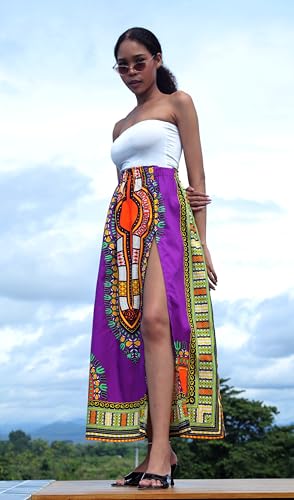 DA'IKI African High Slit Dashiki Art Elastic Waist Kente Ankara Dance Skirt Wax Cotton 1