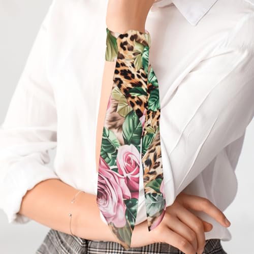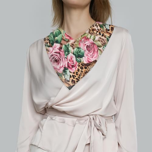 Tiger Print Flower Square Head Scarf for Women Animal Tiger Leopard Print Floral Hair Scarf Fashion Lightweight Silk prefer Scarves Neckerchief Hair Wrap Neck Scarf 23.6''x23.6''