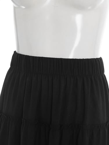 Women's Casual Daily Elastic Waist Tiered Swing Midi Skirt for Work School Date Holiday 6