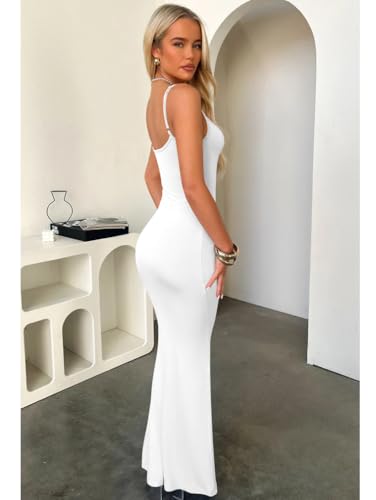 LAGSHIAN Women's Summer Casual Slip Maxi Dress Sexy Spaghetti Strap Bodycon Long Dresses 4