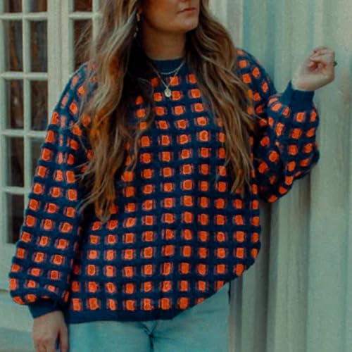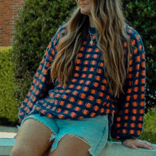 More information about Hixiaohe Oversized Checkered Sweater for Women Trendy Pullover Sweaters Casual Long Sleeve Ribbed Knit Tops Fashion Clothes