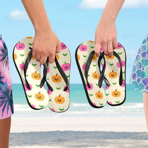 Burbuja Bats Pumpkins Flip Flops for Women Men, Soft Thong Sandals Rubber Slippers for Pool Beach Essentials 1