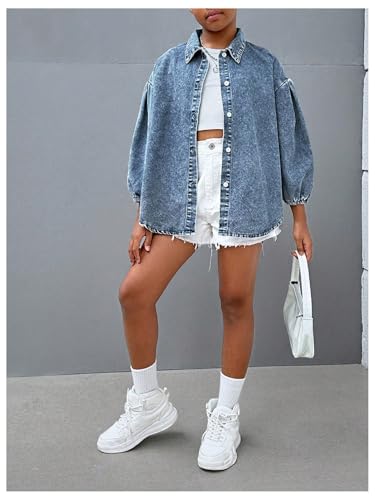 More information about Floerns Girl's Y2k Denim Jacket Bishop Sleeve Button Down Baggy Jean Trucker Jacket